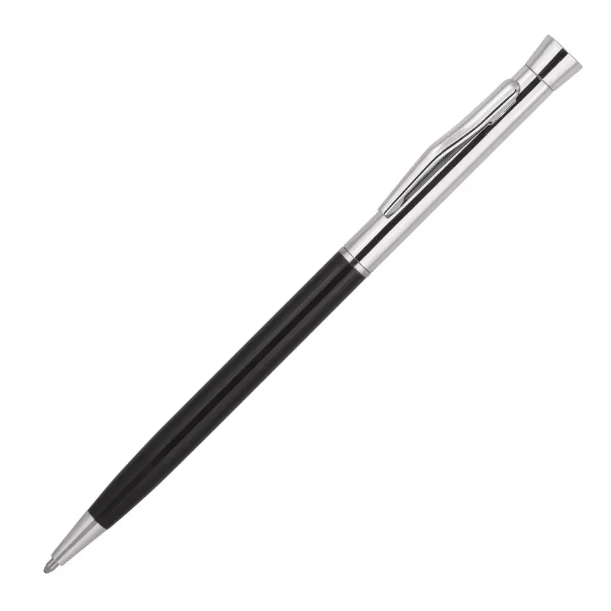 Derofe Fine Writing Instruments presents the Stripe Black Ballpoint Pen in an elegant black gift box. Laser engraved (mirror chrome finish) or pad printed with your client's promotional logo on the upper barrel, this exceptional pen is the epitome of integrity and quality. Professionally equipped with Derofe Swiss metal refill (1.0mm nib and 9,300m capacity), this durable, black metal pen with chrome trim boasts a twist action, retractable ballpoint delivering black ink. Pricing includes a 1 position laser engraved logo on the upper barrel. Setup and freight charges apply.