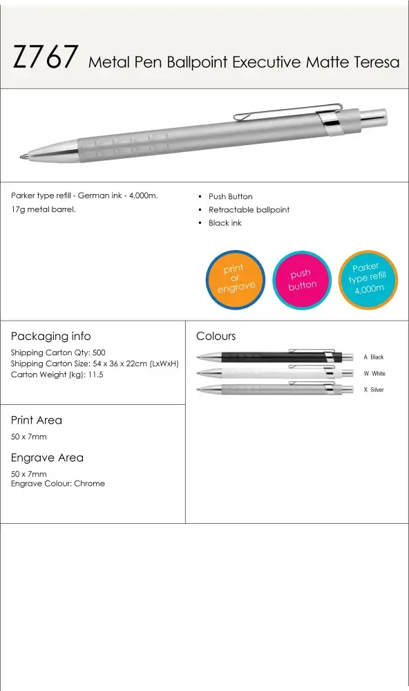 Custom Metal Pen Ballpoint Executive Matte Teresa