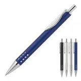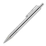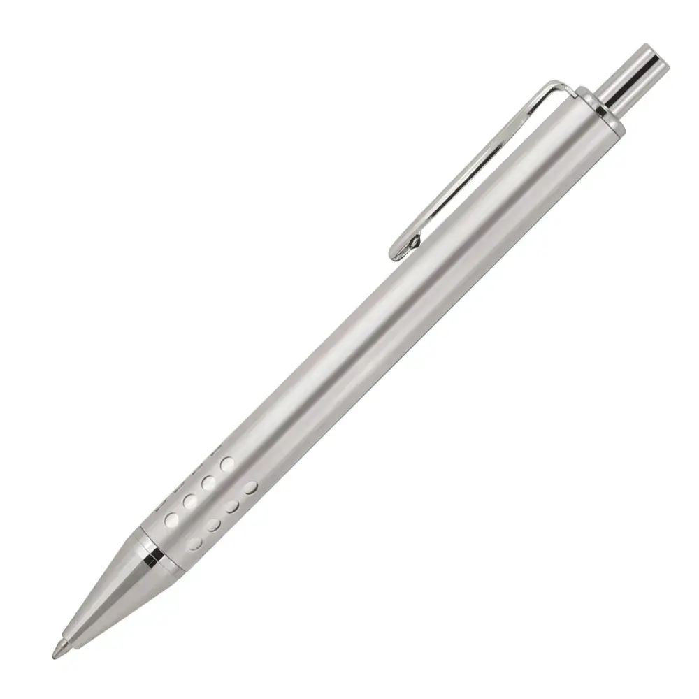 The quality of the Sabine Metal Ballpoint Pen is enhanced by the wave-like curves of the clip and the modernist detailing. The metal barrel can be pad printed with your client's logo, and there are also the additional options of engraving for a classy white finish. Push button, retractable ballpoint delivers quality black ink from a Parker type refill - German ink - 4,000m. A, C, and E are matte finish D is shiny finish