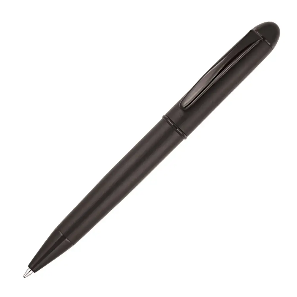 The PenlineSwiss Vernier Matte Metal Ballpoint Pen comes in smart black with gloss black trim. The metal barrel comes with twist action retractable ballpoint and the black ink runs freely from the PenlineSwiss refill made in Switzerland - 5,900m. Your client's promotional logo can be pad printed or laser engraved (in chrome) on the cap.