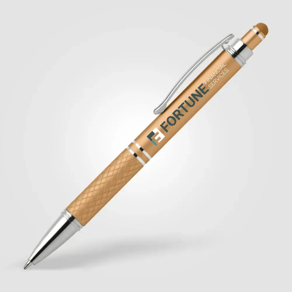 The Phoenix Softy Metallic features a luxurious soft-touch finish in rich metallic colours on both the barrel and the diamond-textured grip. Polished chrome accents, trim, and clip give it a sophisticated look. Available in a range of premium barrel and matching stylus colours, this pen can be personalised with your logo using ColourJet, our vibrant full-colour inkjet imprint technology.