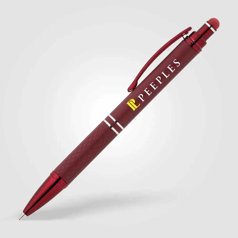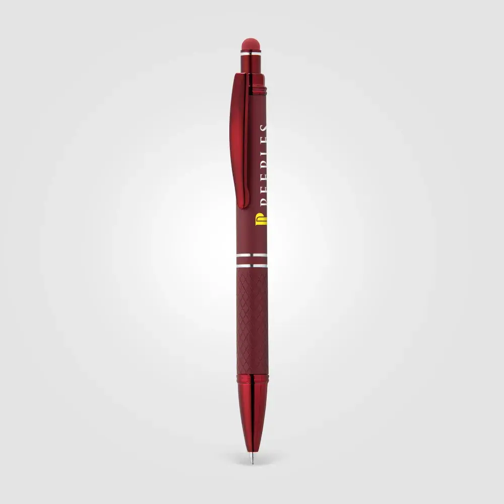 The New sophisticated Coloured top to bottom Phoenix pen is sure to stand out in a crowd. Featuring trendy colour selection and accented with shiny chrome rings for maximum visibility. Bring out the best in your brand with this stylish pen and enjoy easy touch-free touchscreen writing and swiping with the colour-matched stylus on the plunger. Customize now for branding that is dressed to impress.