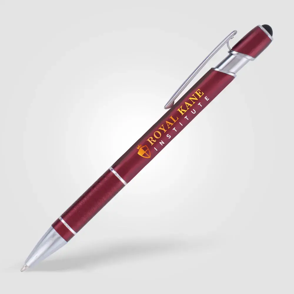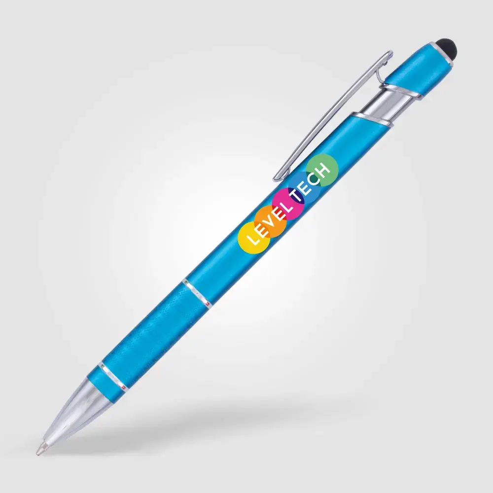 This dual-function ballpen with stylus has a sophisticated matte finish and features a textured grip section and shiny chrome trim. It is available with either blue or black writing ink. Choose from a great selection of nine striking colour options.