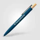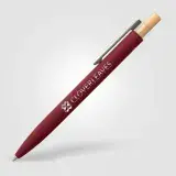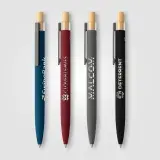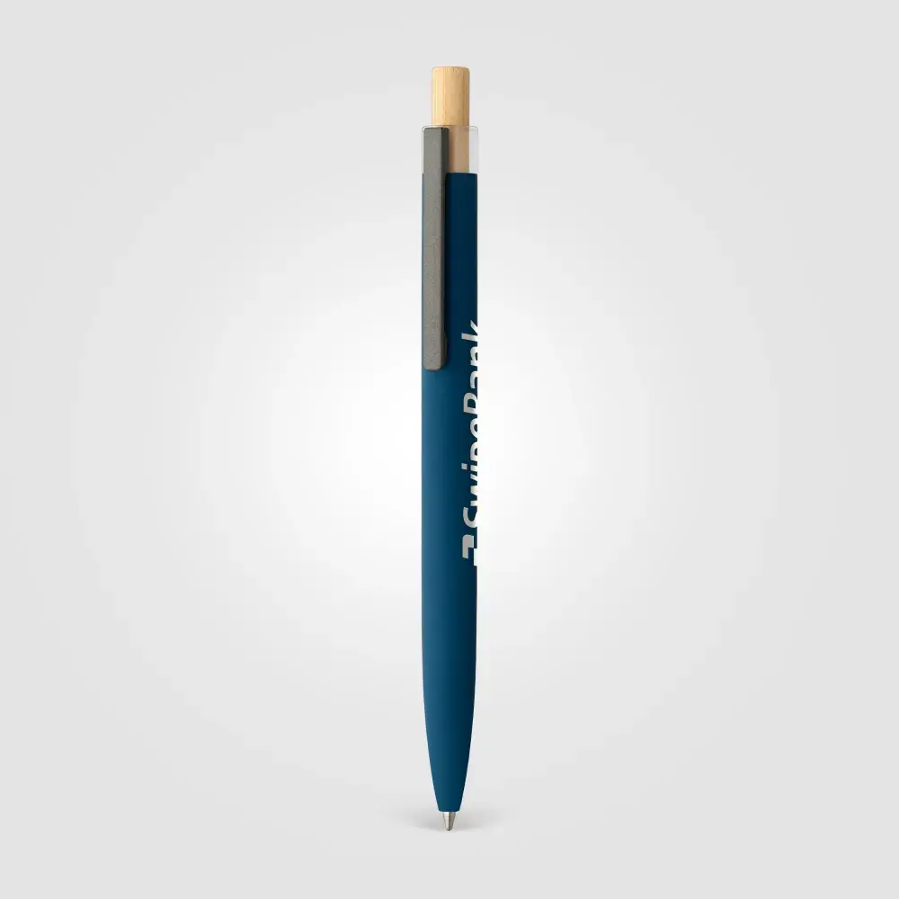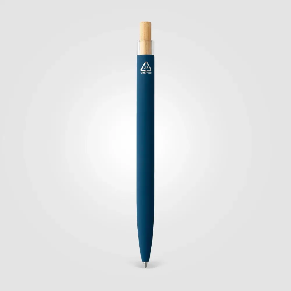 A blend of style and performance, the Reborn Recycled Aluminium Deluxe Pen features a recycled Aluminium barrel with a sleek rubber-painted finish. The clear RPET plastic top and bamboo plunger add distinct touches of quality. With a Parker-style refill, it ensures a smooth writing experience up to 2000m. Opposite the gunmetal-painted steel clip, a laser-engraved recycled symbol subtly completes the design.