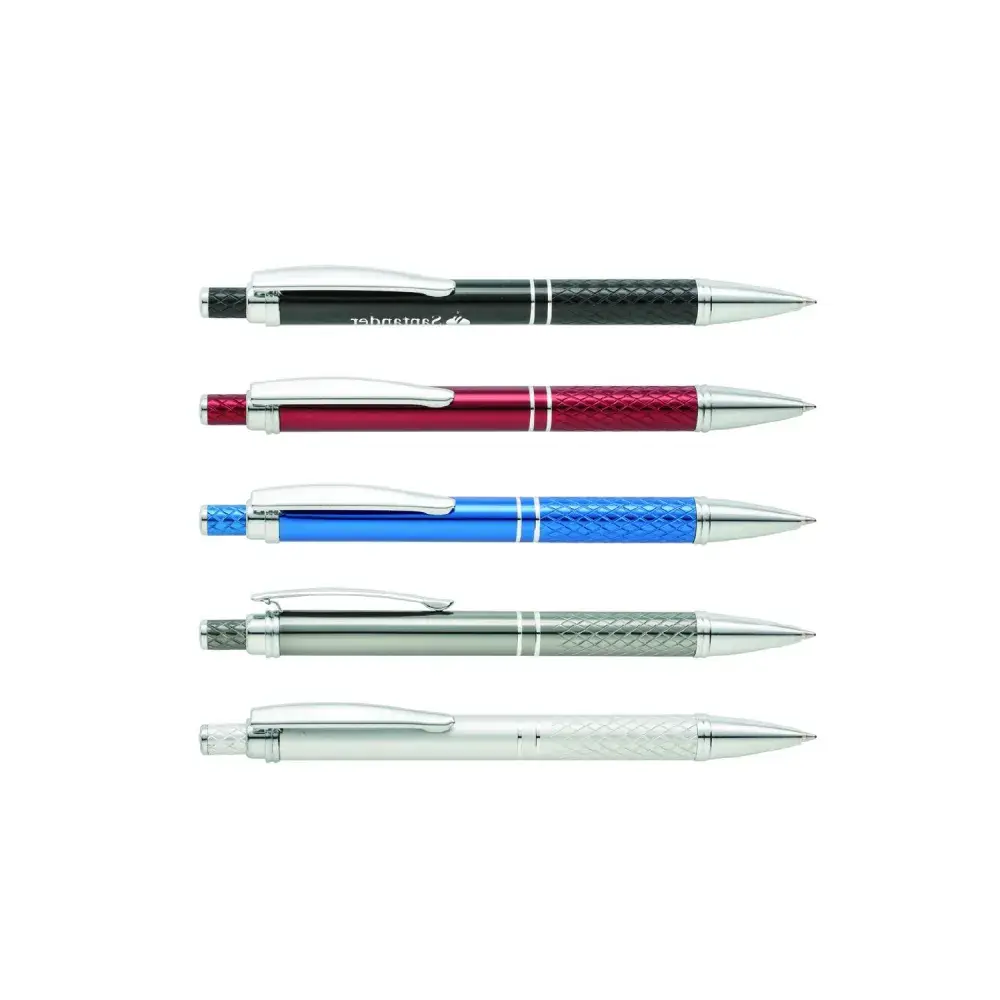Durable Aluminium Body: Lightweight yet sturdy for long-lasting performance.|Elegant Chrome Trimming: Adds a touch of sophistication to the sleek design.|Click Action Mechanism: Smooth and reliable operation for effortless writing.|Ergonomic Design: Comfortable to hold, making it ideal for extended writing sessions.