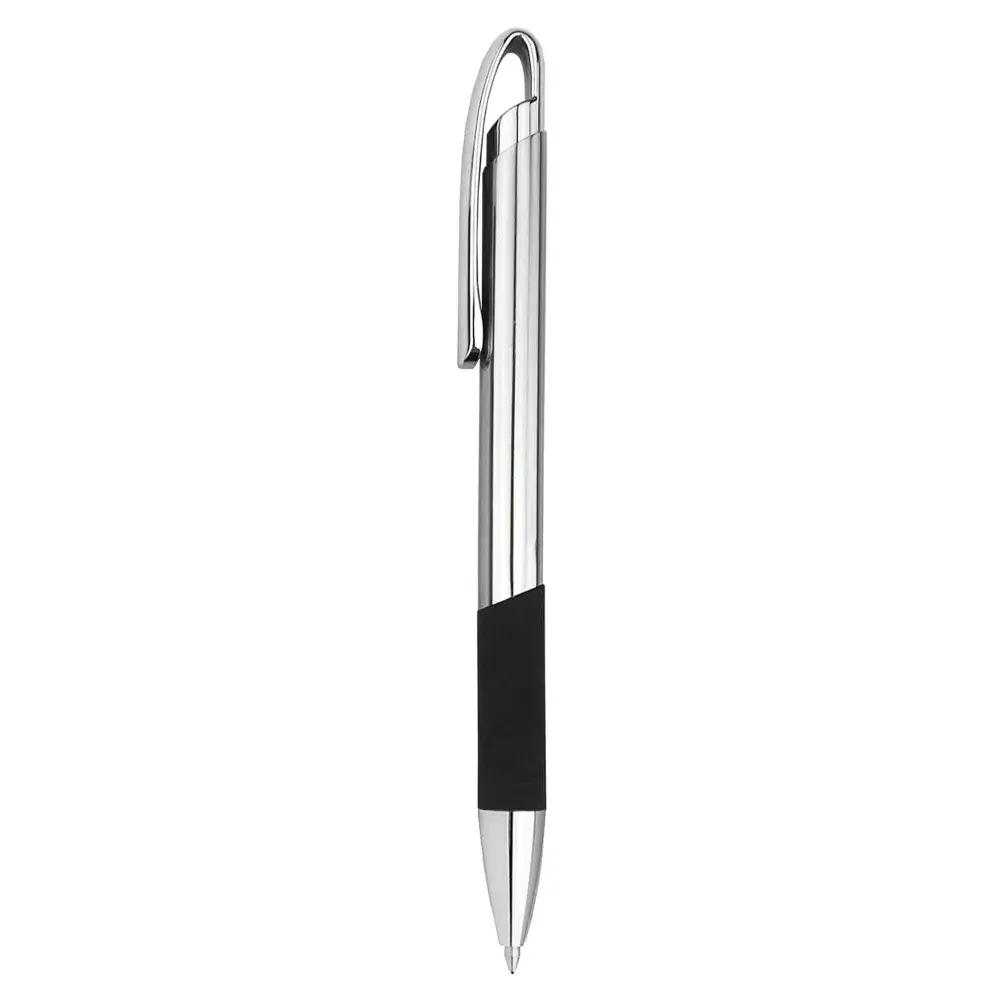 Quality aluminium metal pen click action shiny metallic barrel with rubber grip shiny silver arch-shaped clip plastic Cross-Type German manufactured black ink refill 1200 meters writing distance tungsten carbide ball provides you with quality writing.