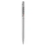 Elegant slim quality stainless steel metal hotel pen with twist action shiny silver chrome barrel a perfect budget metal pen for hotel and motel it has high quality German manufactured black ink refill 1200 meters writing distance tungsten carbide ball provides you with quality writing.