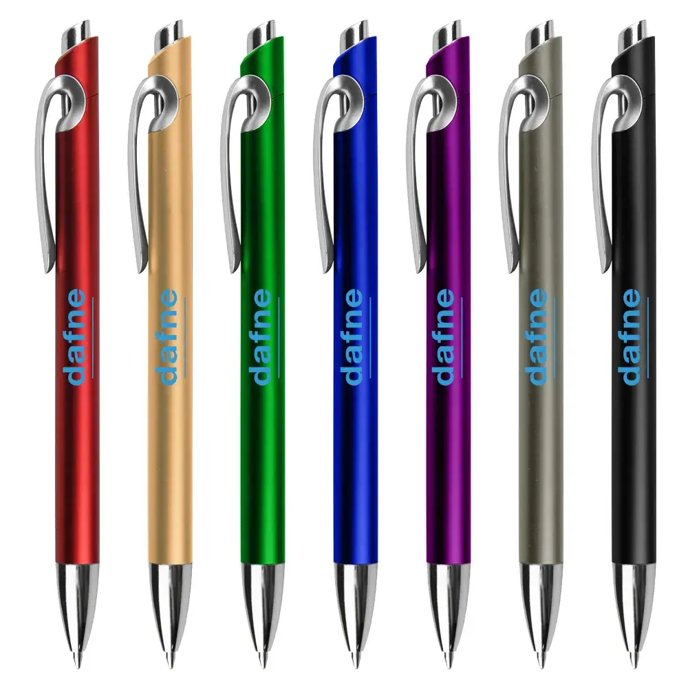 A special hook shape design clip solid metallic barrel plastic pen with shiny chrome tip retractable action has a high quality German manufactured black ink refill 1200 meters writing distance tungsten carbide ball which brings you the better writing quality.