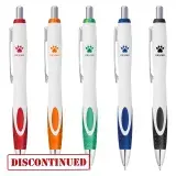 Retractable plastic pen with opaque white barrel and beautiful design of frosted translucent soft-touch grip shiny silver chrome trim. It has high quality German manufactured black ink refill 1800 meters writing distance tungsten carbide ball provides you with quality writing.