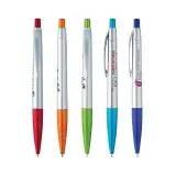 Find a bit of fun in your stationary collection; this pen is a retractable ballpoint with a white barrel and colour accents. Offering clear, clean branding. Comes with black ink.