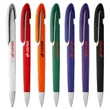 Click action plastic pen with broad printing area on clip coloured opaque barrel and clip with matching coloured soft-touch grip a small matt silver panel beneath the clip echoing the matt silver chrome tip. It has high quality German manufactured black ink refill 1800 meters writing distance tungsten carbide ball provides you with quality writing.