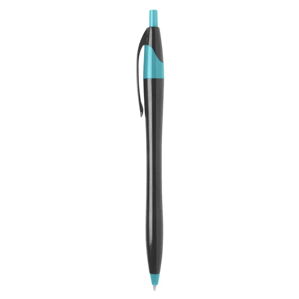 One of the most popular slim stylish plastic pen in promotions. Retractable pen with popular contoured design high quality affordable and a great solution for your next tradeshow office re-supply or give away. Black barrel with coloured push button neck and tip. Cross-type German manufactured black ink and tungsten carbide ball which brings you the better writing quality 1200 meters writing distance.