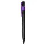 Click action European design plastic pen frosted black barrel with coloured trim large printing area on clip. It has high quality German manufactured black ink refill 1800 meters writing distance tungsten carbide ball provides you with quality writing.