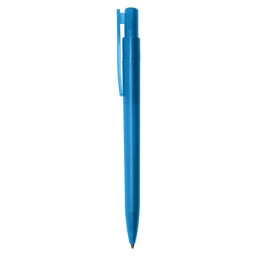 Click action European design plastic pen transparent coloured barrel and trim large printing area on clip. It has high quality German manufactured black ink refill 1800 meters writing distance tungsten carbide ball provides you with quality writing.