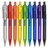 A simple slim and bright transparent coloured plastic pen high quality ABS transparent plastic. Click action with high quality German manufactured black ink and tungsten carbide ball which brings you the better writing quality 1200 meters writing distance.