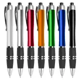 Retractable plastic pen with shiny colour barrel shiny silver chrome accents and 2 rings on black soft-touch grip. It has high quality German manufactured black ink refill 1800 meters writing distance tungsten carbide ball provides you with quality writing.