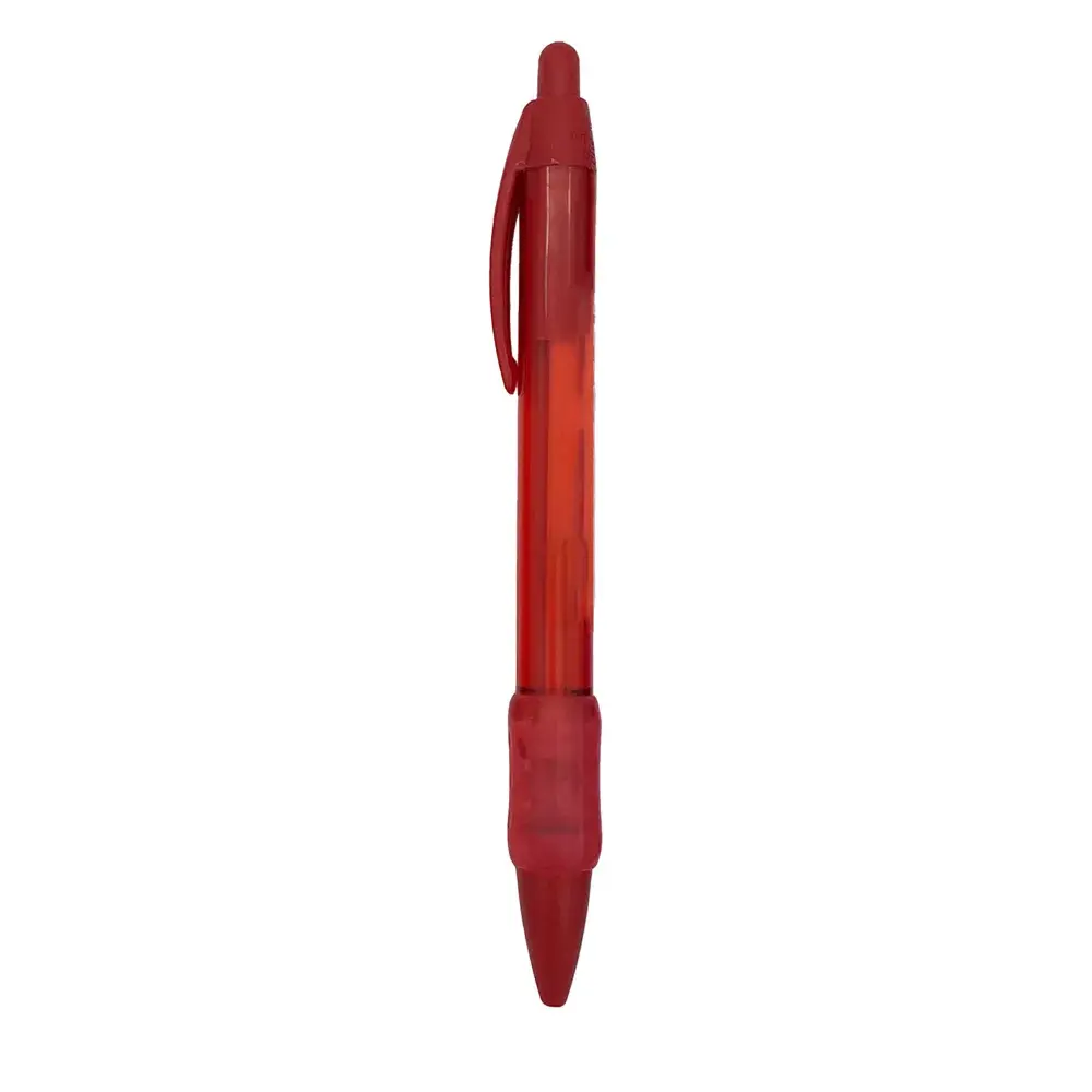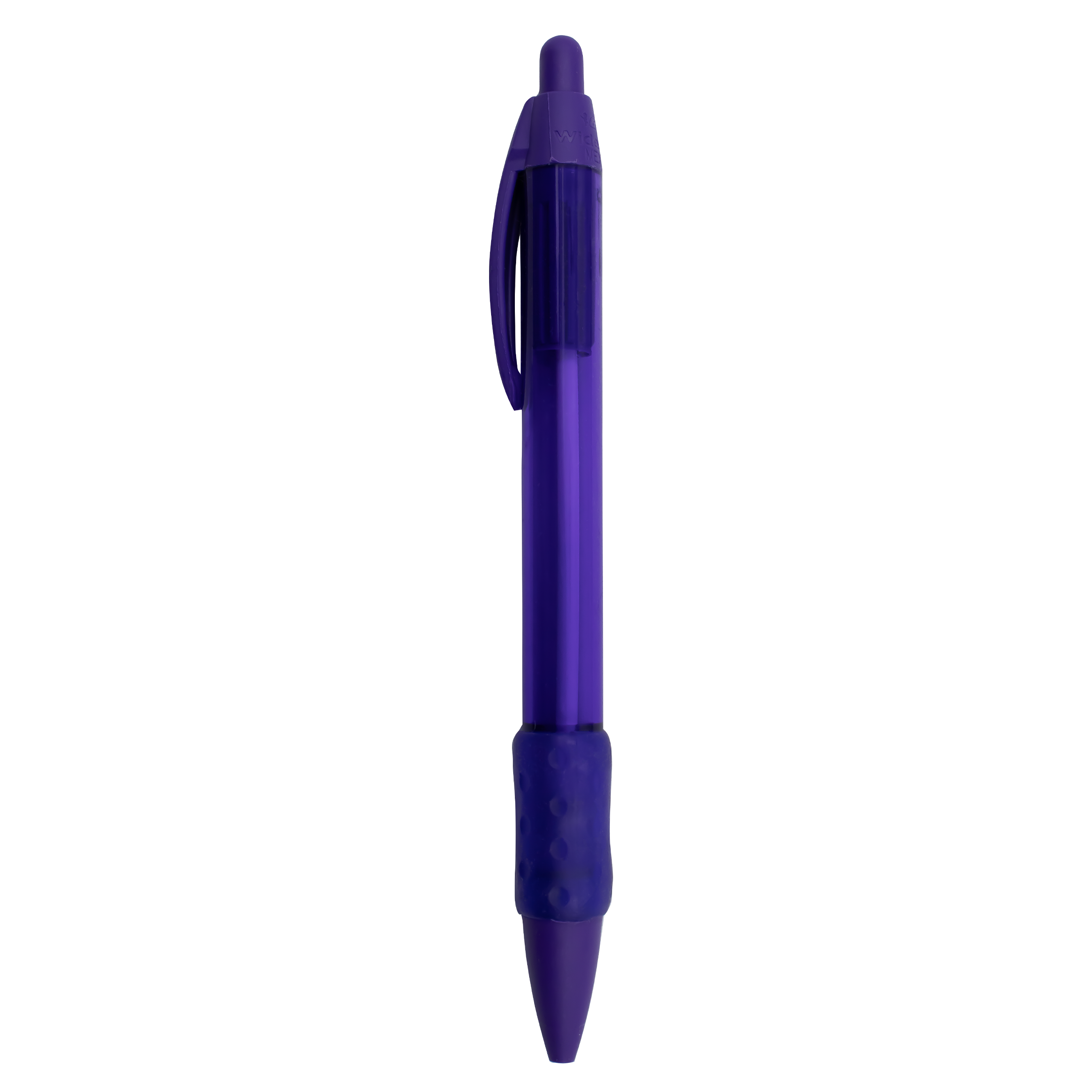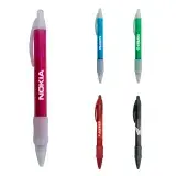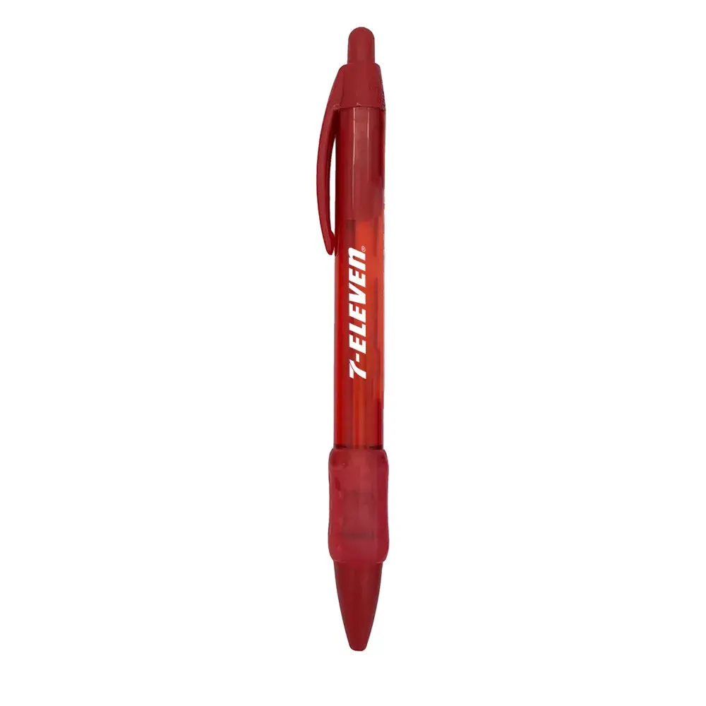 This wide-profile pen offers extra space for your branding to stand out loud and clear. A classic desk staple with a frosted clear trim, it delivers a clean look with solid promotional impact. Available with blue or black ink.