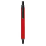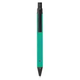 Rubberized unique flat-shape metal pen made of polished aluminium click action with plastic trim plastic Parker-Type German manufactured black ink refill 1200 meters writing distance tungsten carbide ball provides you with quality writing.