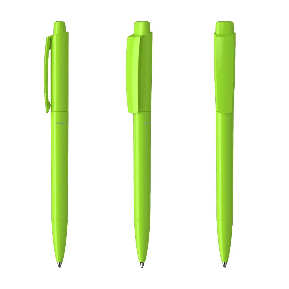 Klio the iconic European brand since 1900 now available worldwide. (Klio Model: 41243) Crafted from high gloss biobased plastic made from plant starch (PLA) this pen offers a sleek and modern look while being industrially compostable according to DIN EN 13432 standards. Its smooth flow of shape from round to flat along with the stylishly curved clip exudes sophistication. The click-action push button adds to its ease of use. Paired with a high-quality SilkTech German-made black ink refill meeting ISO 12757-2 standards it ensures a reliable writing experience with a shelf life of 3 years. With a writing distance of 3000 meters double that of standard pens and equipped with a tungsten carbide ball for precision it guarantees quality writing. Designed and manufactured in Germany exclusively available through the Dex Collection in Australia and New Zealand. Minimum order of 500 units per colour. Custom colours available for orders of 5000 or more.