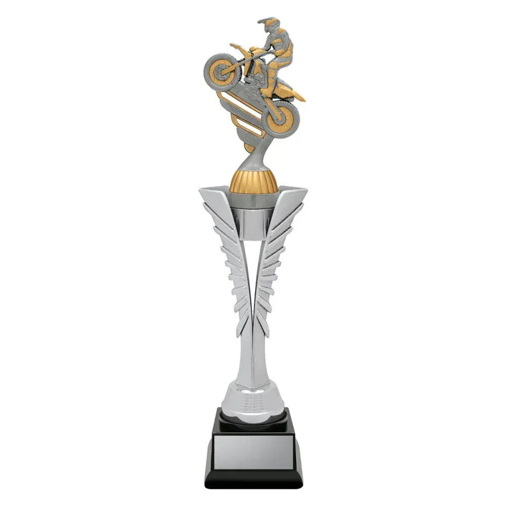 Silver Spear trophies showcase a brilliant top on a distinctive "spear" riser - the top finished in antique silver. Available in 3 sizes.