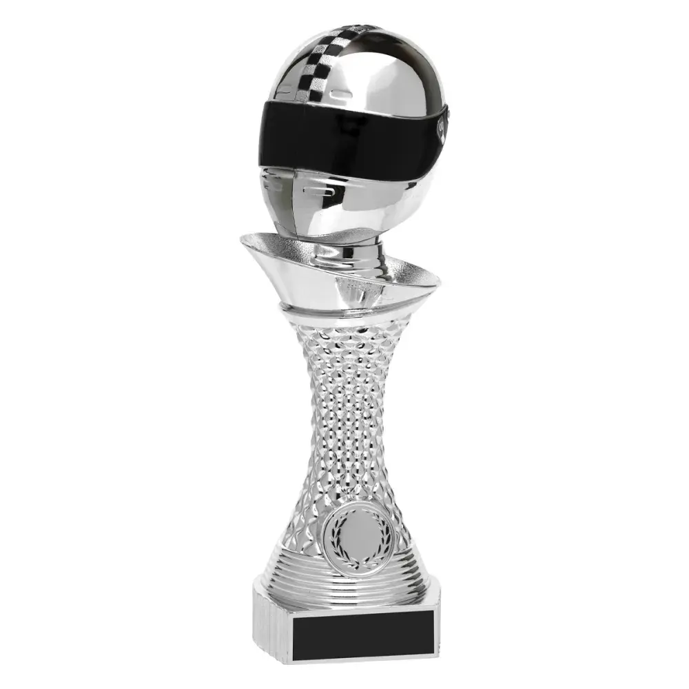 The 'Vogue' tower - for Motorsport - is an innovative award that features a brilliant 3D silver / black helmet top. The heavyweight design of this Tower series offers extra weight and prestige. Available in 3 fantastic sizes.