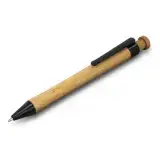 Retractable ballpoint pen with a natural bamboo barrel and black trim made from PLA plastic derived from corn starch. The pen has a black large volume refill with 1200 metres of German manufactured Dokumental ink and it can be presented in an optional gift box.