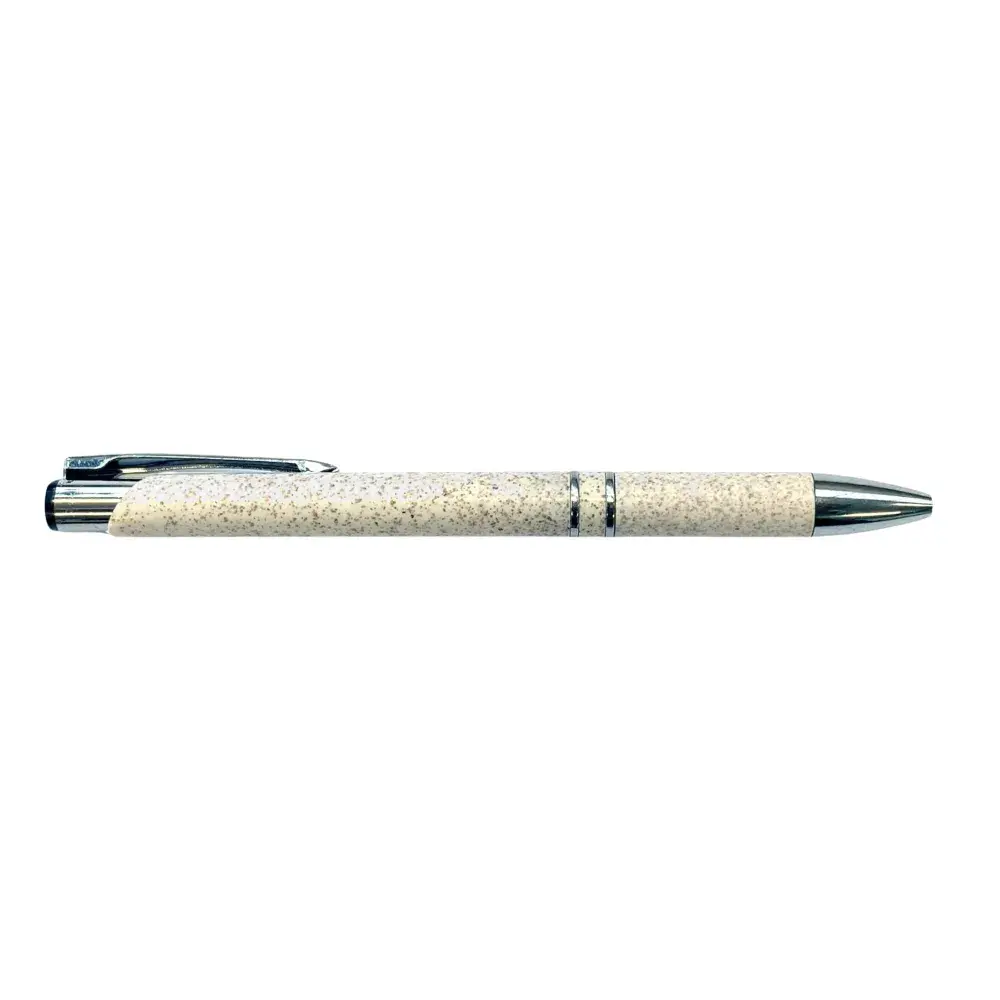 Eco-Friendly Wheat Straw Barrel: Made from sustainable wheat straw material, making it a great choice for environmentally conscious users.|Slim and Compact Design: Its slim profile makes it easy to carry and perfect for on-the-go writing.|Push/Click Action: Smooth and easy-to-use mechanism for quick, reliable writing.|Silver Trimming: Adds a touch of sophistication to the pen's design, making it both functional and stylish.|Customizable: Ideal for promotional purposes with space for your logo or branding.