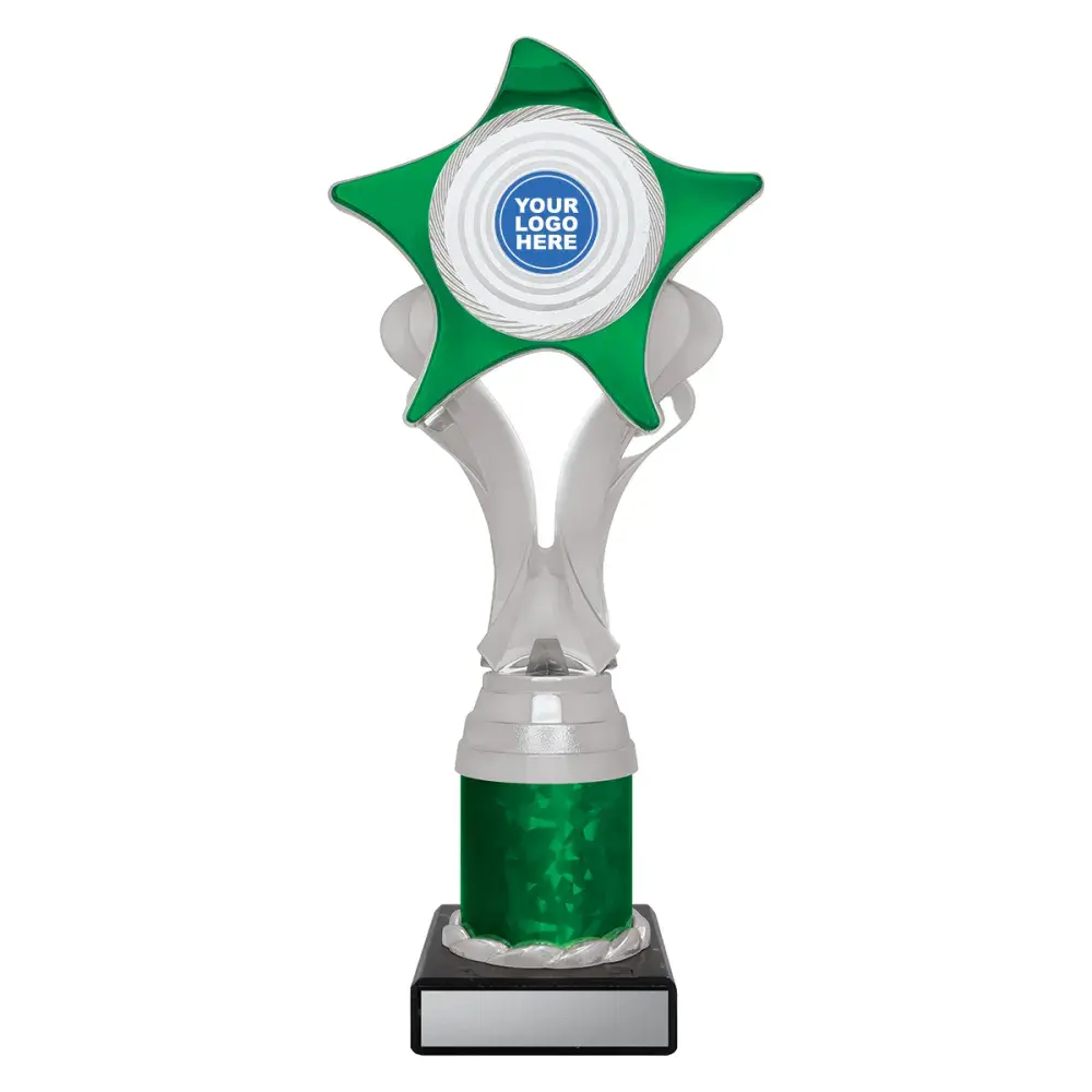 Radiant Athena holder series of trophies perfectly shows off your custom logo over a number of sizes. Choose colour combination to best suit your awards.