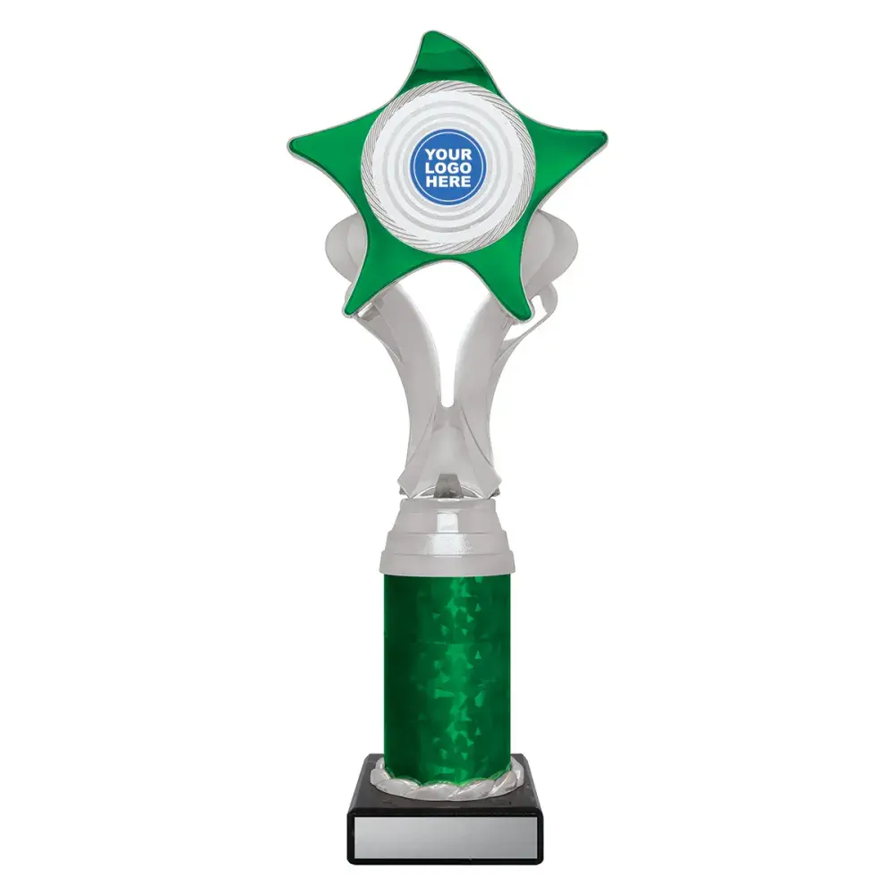 Radiant Athena holder series of trophies perfectly shows off your custom logo over a number of sizes. Choose colour combination to best suit your awards.