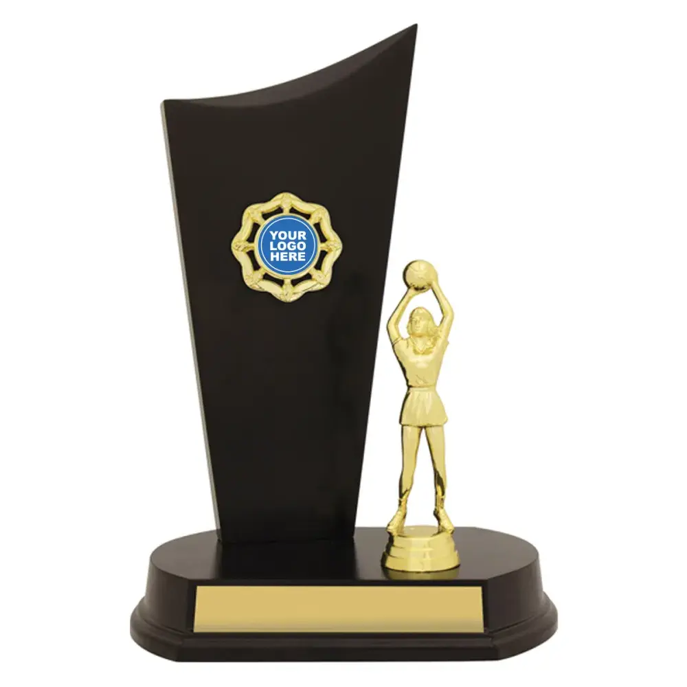 Striking series of timber wing based trophies - multiple sizes and space for your logo insert. Tops for all sports available.