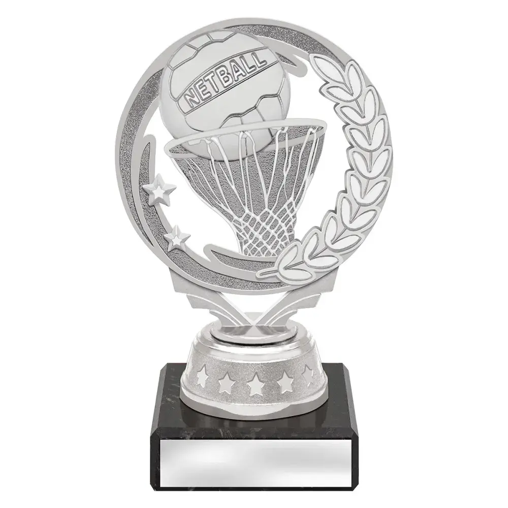 Affordable trophies for your netball team with the versatile silver torch top which can be used with columns of any colour.