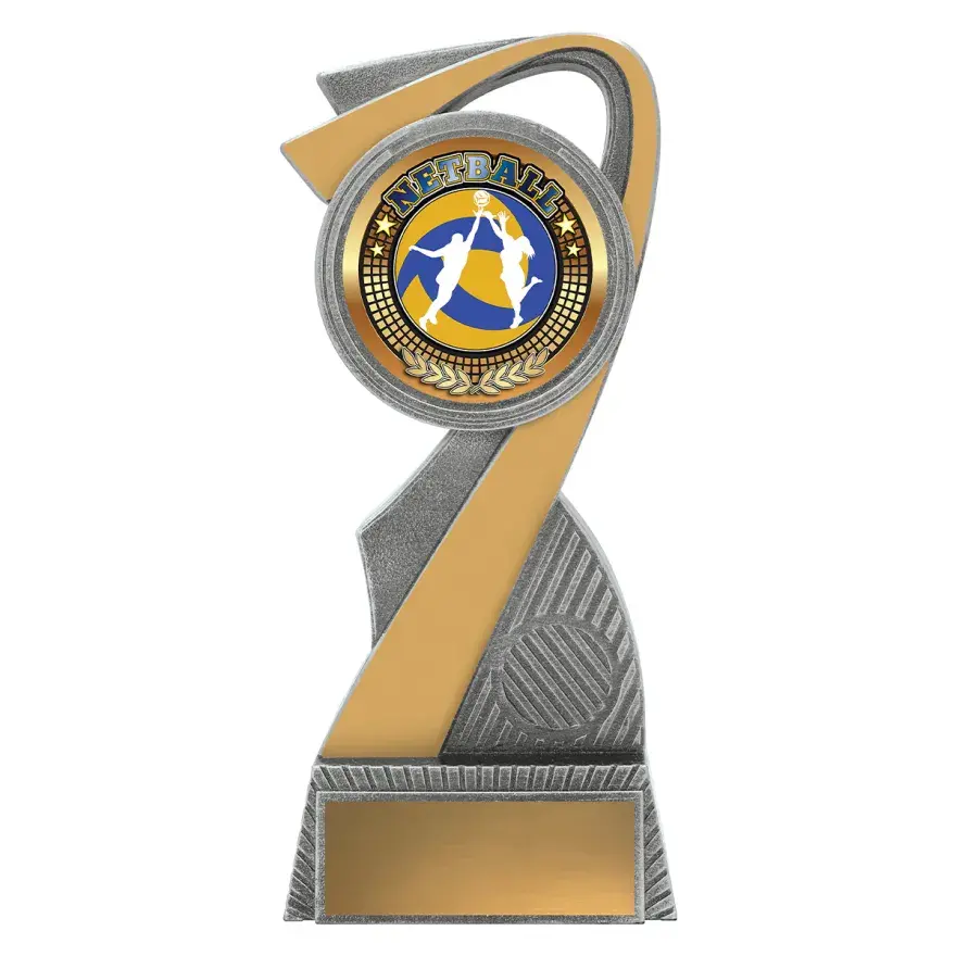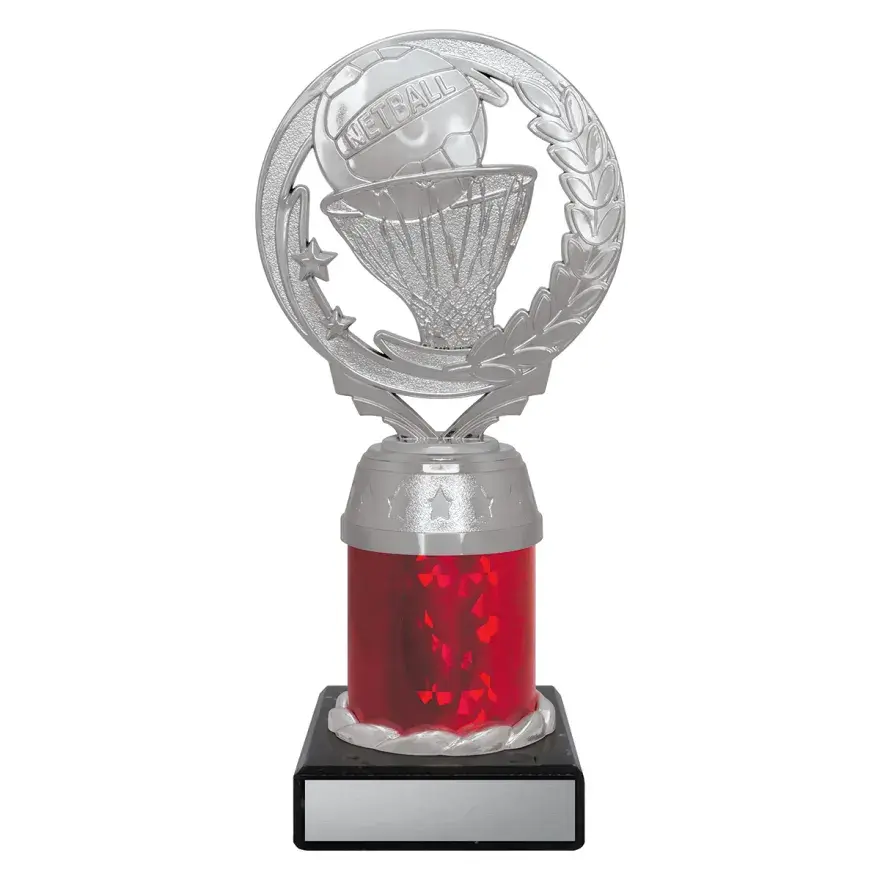 Dynamic netball trophies perfect for players of all ages in your club. These 'Flag' netball trophies feature a stylish star based design with iconic ball & net elements.