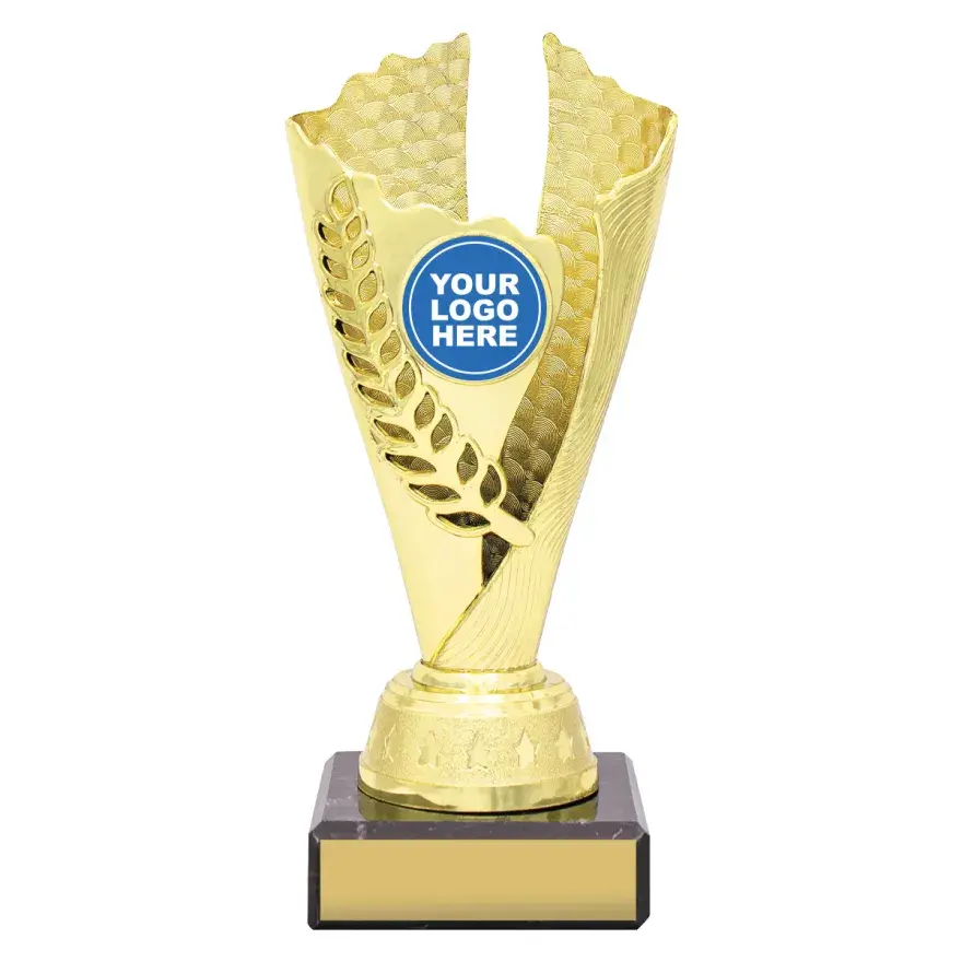 Flyer Series of trophies feature beautifully designed holders on columns of different colours - option to showcase 25 or 50mm logo or insert.