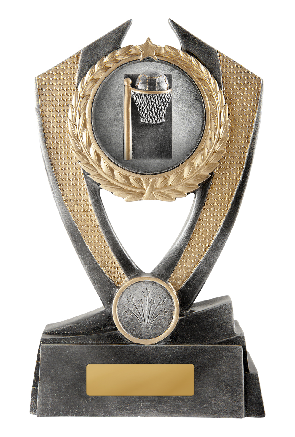 Custom Hero Shield-Netball Silver-Gold 175mm
