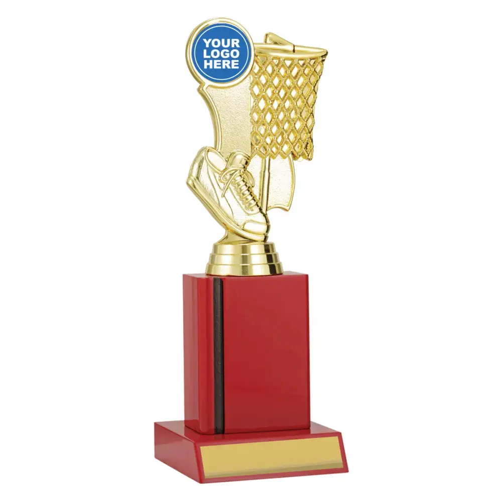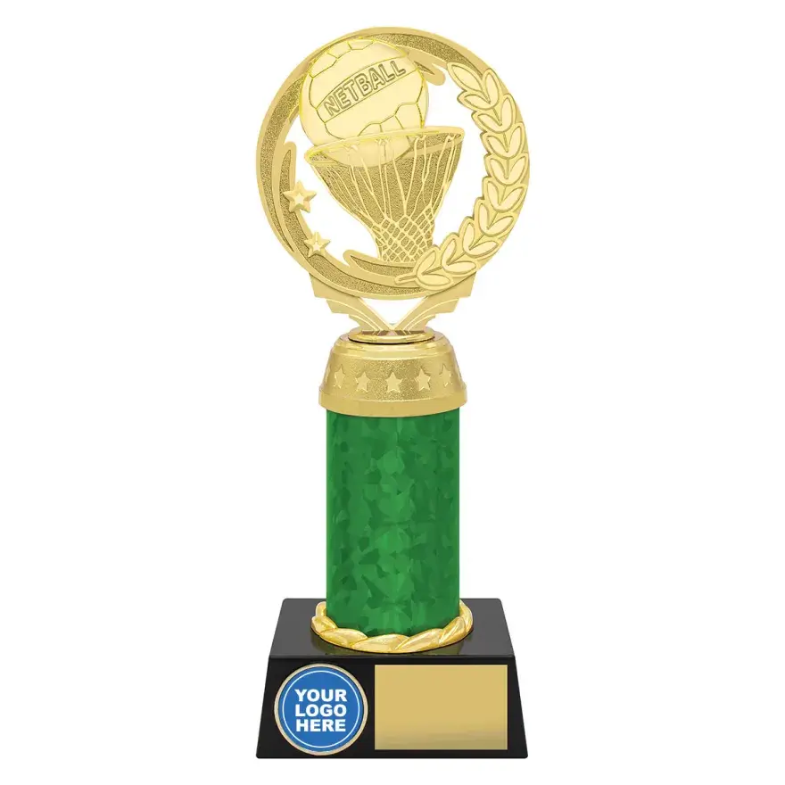 Classic series of column trophies available in different colours. Choose top for sport or activity. Netball series offers prominent space for your custom logo.