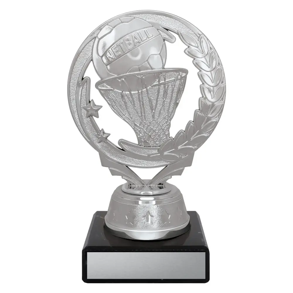 Affordable trophies for your netball team with the versatile silver torch top which can be used with columns of any colour.