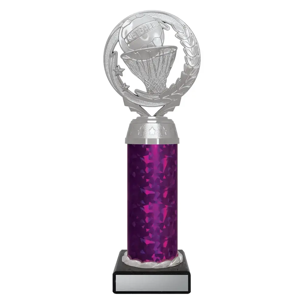 Affordable trophies for your netball team with the versatile silver torch top which can be used with columns of any colour.