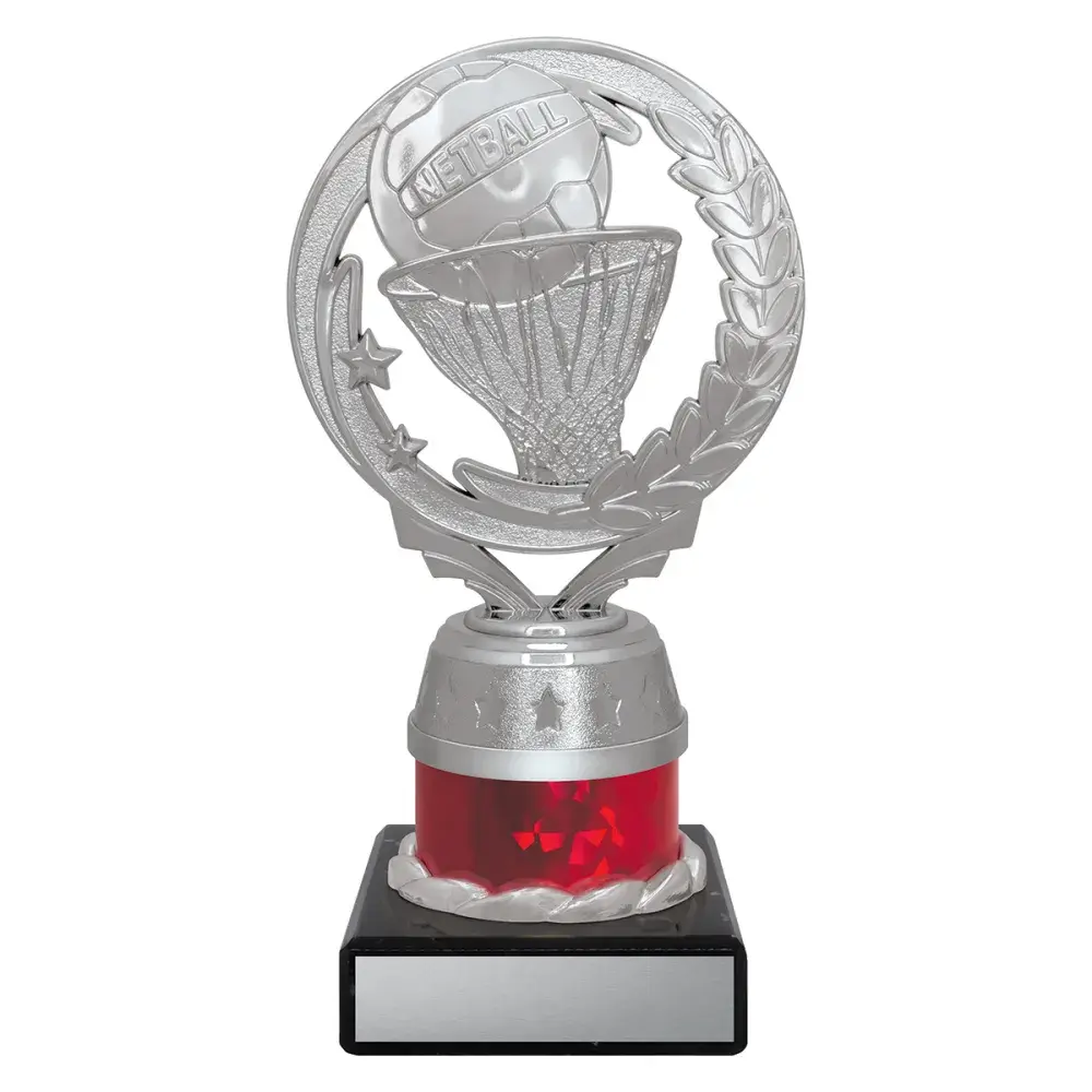Affordable trophies for your netball team with the versatile silver torch top which can be used with columns of any colour.