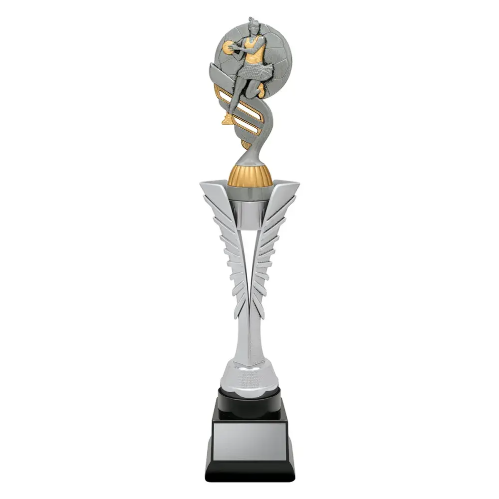 Silver Spear trophies showcase a brilliant top on a distinctive "spear" riser - the top finished in antique silver. Available in 3 sizes.