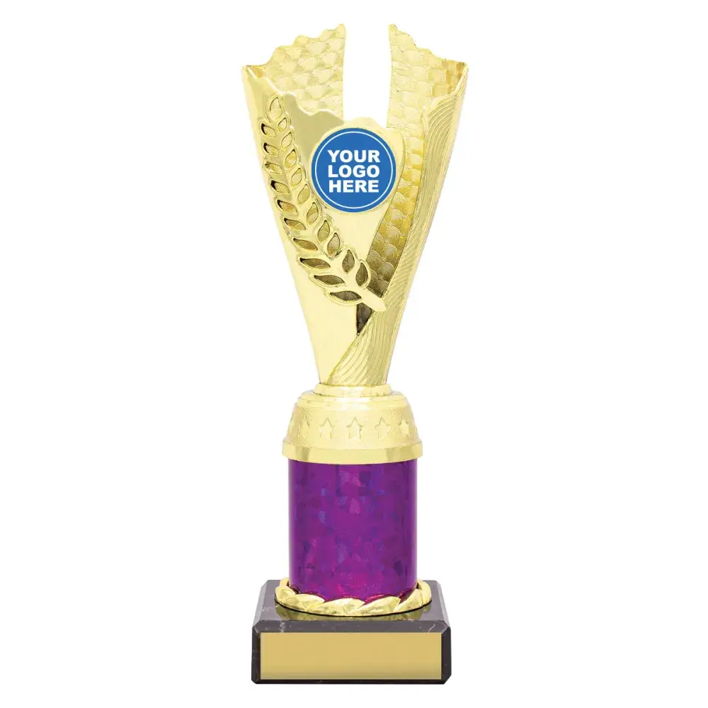Visually stunning design of cup trophies with central space for your centre insert. Choose from multiple colour combinations to best suit the trophies for your event or competition. Iconic wreath cup celebrates the achievements of your award winners.