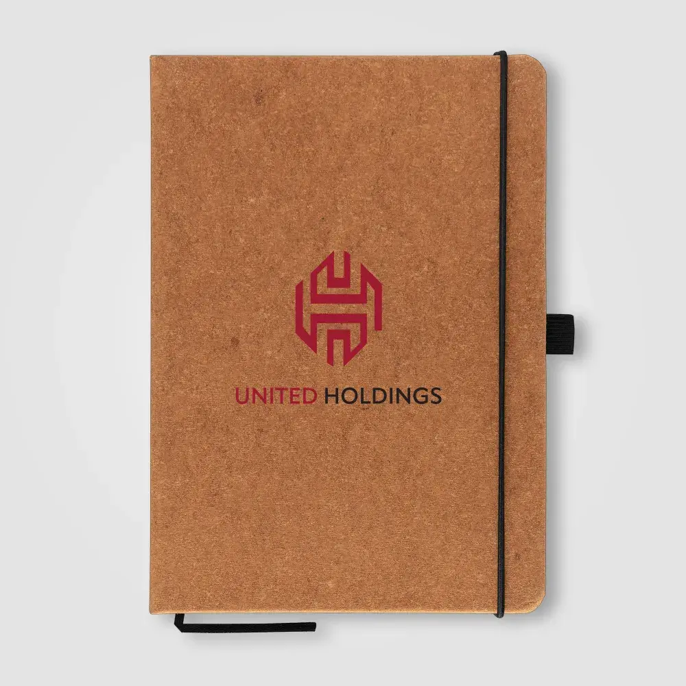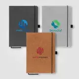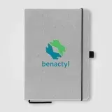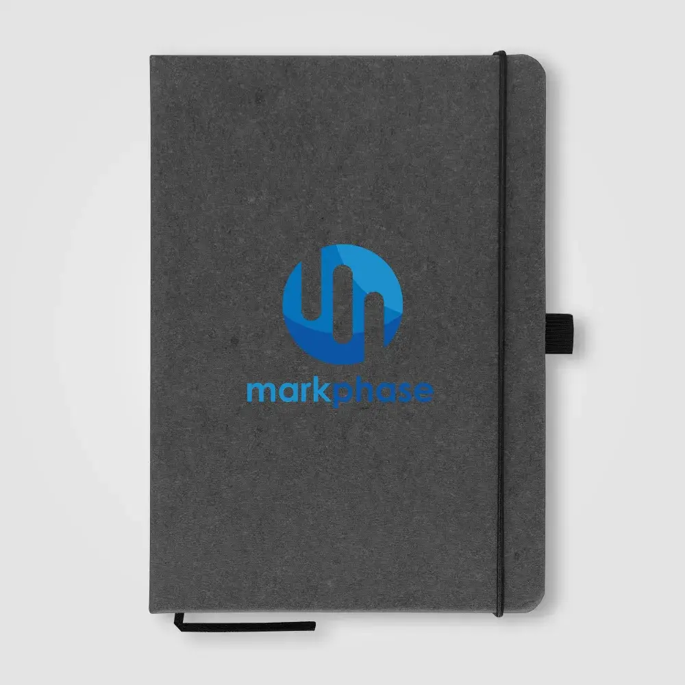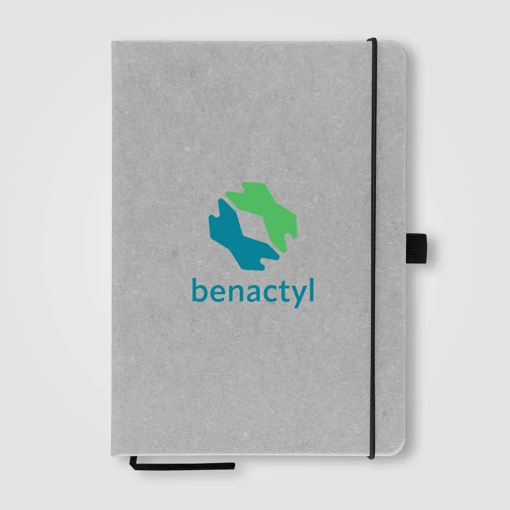 The Carson Notebook is perfect for journaling at home or taking notes in meetings. Its hardcover is made from 75% recycled leather and 25% plastic, and it contains 80 sheets (160 pages) of 70 gsm ivory lined recycled paper. This stylish notebook also features a ribbon marker, stitched binding, elastic closure, and pen loop (pen not included). Personalise with your logo using ColourJet, our full-colour inkjet imprint process.