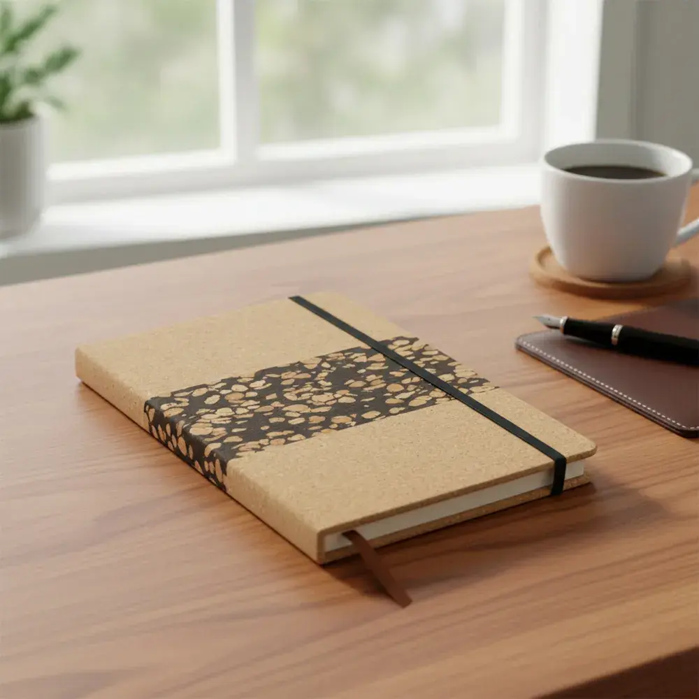 Energise your creativity with this one-of-a-kind notebook, featuring a cover crafted from naturally pressed cork and coffee grounds. Each cover displays the rich textures and earthy tones of real coffee, offering a tactile and eco-friendly writing experience. Upon first use, the notebook carries a subtle, invigorating coffee aroma that adds a sensory dimension to your writing, gradually softening over time. Perfect for journaling, sketching, or note-taking, it blends sustainability with style, making it an ideal gift for coffee lovers, creatives or anyone who enjoys artisanal craftsmanship.