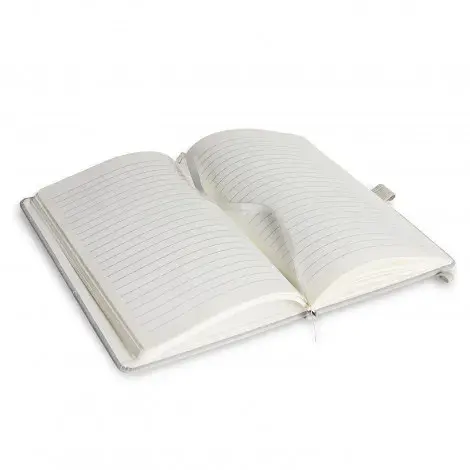 Made almost entirely from recycled materials, this stylish notebook features an RCS-certified recycled PU cover with a modern textured design. The inner pages are made from GRS-certified recycled lined paper perfect for lists, notes or keeping track of everyday plans. Enhanced with practical details including a ribbon bookmark, elastic closure band, and pen loop, it ensures your notes stay organised and accessible wherever you go.