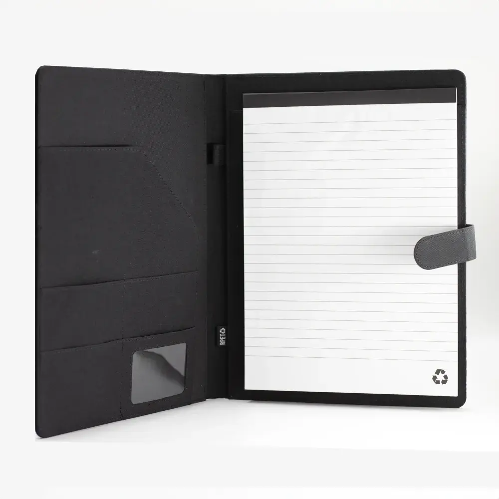 The Original RPET Portfolio brings a tidy, eco-leaning feel to meetings, planning sessions and daily carry. Made from recycled paper and 600D RPET with a magnetic closure, it opens to a roomy layout designed for notes, loose papers and the included 20-page pad (lined on one side, approx. A4). A clean, dependable option for anyone wanting to add a quick touch of professionalism to their day-to-day.