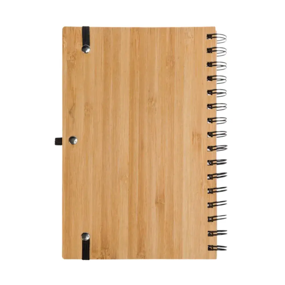 Eco Conscious Notebook: A5 bamboo veneer cover with 80 ruled recycled sheets, date fields, and eco symbols.
