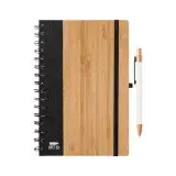 Pen: Aluminium, Rubberised Coating, Bamboo & Plastic, Notebook: Cover - Bamboo Veneer, RPET Strip. Pages -Recycled Paper