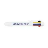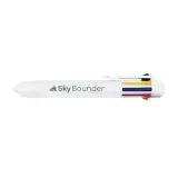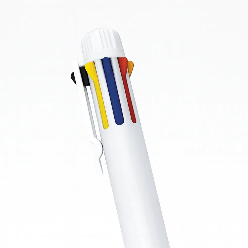 Retractable ballpoint with 8 ink colours: black, yellow, blue, red, orange, green, purple, and pink.