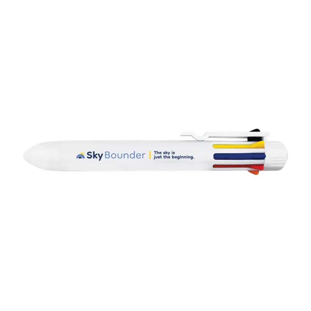 Bring a splash of colour to your notes, sketches, and everyday writing with the Mammoth Pen. This multi-ink ballpoint packs eight vibrant colours—black, yellow, blue, red, orange, green, purple, and pink—into one thick-barrel pen, making it easy to switch shades with a simple click. Handy and convenient, it’s perfect for students, creatives, and anyone who wants to add fun and flexibility to their writing. With its bright white barrel, the Mammoth Pen also provides a bold canvas for your branding.