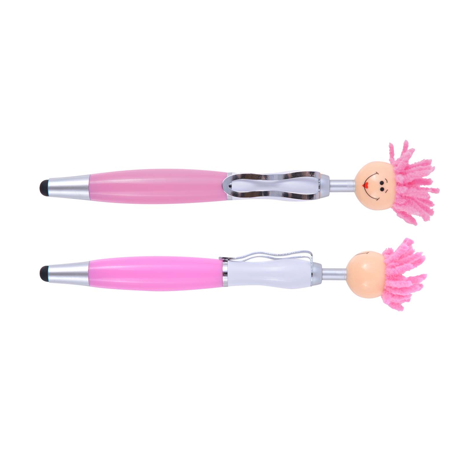 Multifunctional Design: The Mop Top Pen / Stylus serves as both a push-button ballpoint pen and a stylus, offering versatility for various writing and touchscreen tasks.