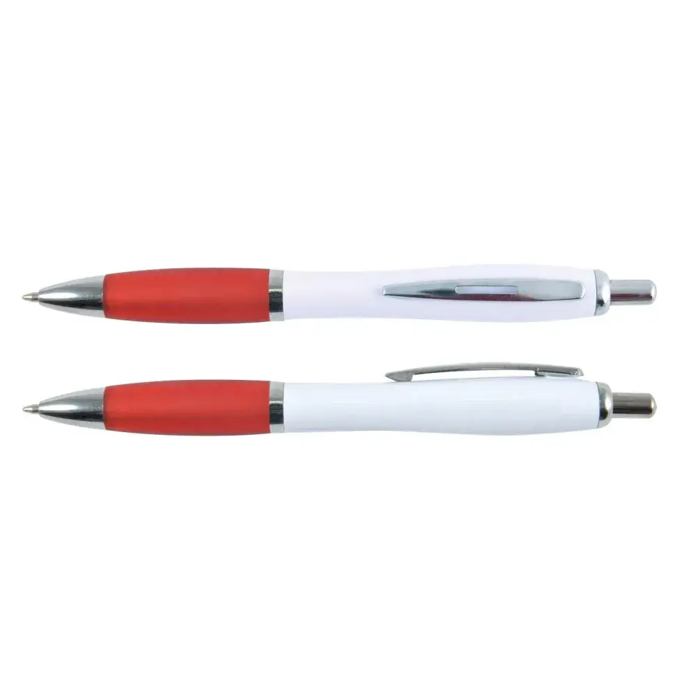 Stylish Design: The Viva Pen - White Barrel features a sleek white plastic barrel and coloured comfort grip, complemented by silver accents, offering both functionality and style.